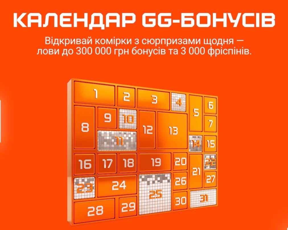 GGBET запустив свій Різдвяний Адвент календар, який триватиме аж до середини січня! Платформа розкидає подарунки на загальну суму 3 000 000 грн. На свята деякі бонуси мають дуже привабливі умови.